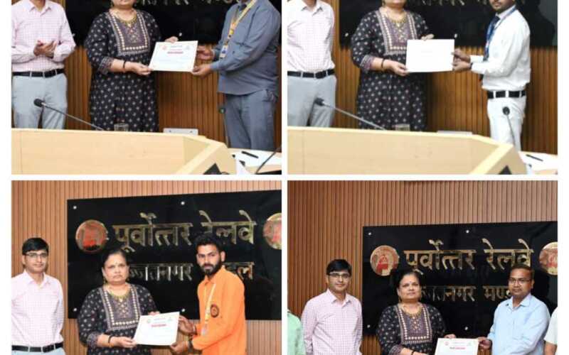 उत्कृष्ट कार्य के लिए डीआरएम ने रेल कर्मचारियों को दिया कार्य कुशलता प्रमाण पत्र