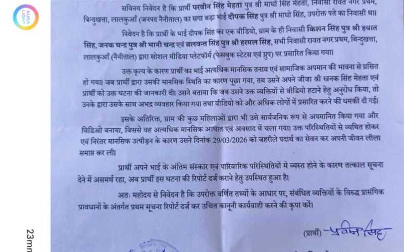 बिंदुखत्ता के बहुचर्चित दीपक की मौत के मामले में मृतक के भाई ने गांव के ही कुछ लोगों को आरोपी ठहराते हुए तहरीर दर्ज की