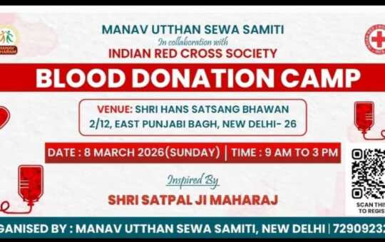 मानव उत्थान सेवा समिति द्वारा 8 मार्च को भारतीय रेड क्रॉस सोसाइटी के सहयोग से पंजाबी बाग आश्रम दिल्ली में...