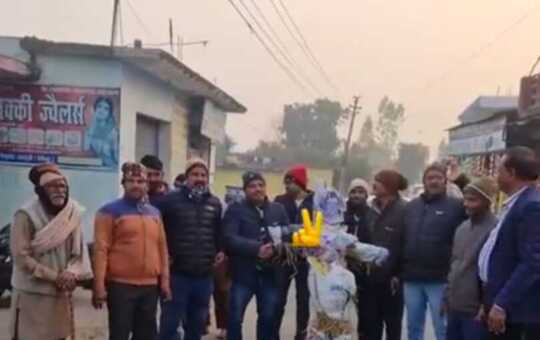 पुराना बिंदुखेड़ा चौराहे पर बिंदुखत्ता राजस्व ग्राम को मुख्यमंत्री घोषणा से हटाने के विरोध में मुख्यमंत्री पुष्कर धामी का पुतला...