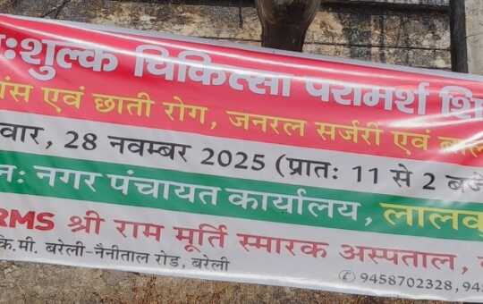 लालकुआं में निशुल्क चिकित्सा परामर्श शिविर का आयोजन कल नगर पंचायत कार्यालय में होगा जिसमें श्री राम मूर्ति स्मारक चिकित्सालय...