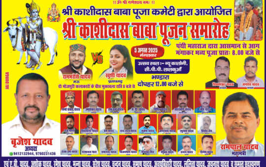 श्री काशीदास बाबा पूजन समारोह का भव्य आयोजन कल लालकुआं सेंचुरी पेपर मिल की न्यू कॉलोनी में किया जाएगा इसको...