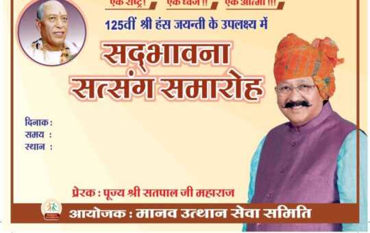 परम संत योगीराज हंस जी महाराज जी की 125 वीं पावन जयंती संपूर्ण भारतवर्ष में धूमधाम से मनाई जाएगी इस...