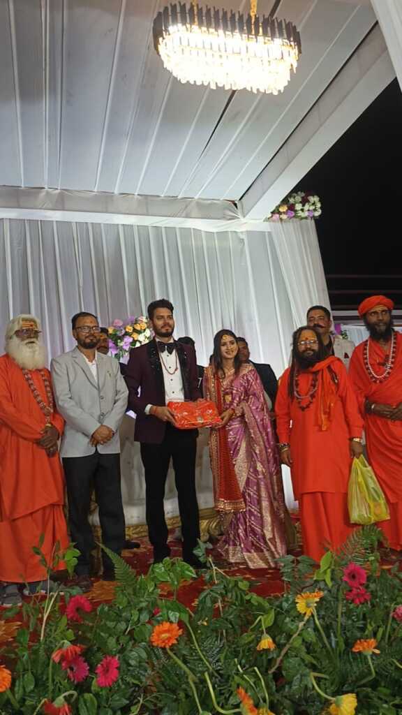 कैंब्रिज यूनिवर्सिटी के पूर्व प्रोफेसर स्वामी मुक्तानंद गिरि जी पहुंचे बिंदुखत्ता, नव दंपति को दिया आशीर्वाद