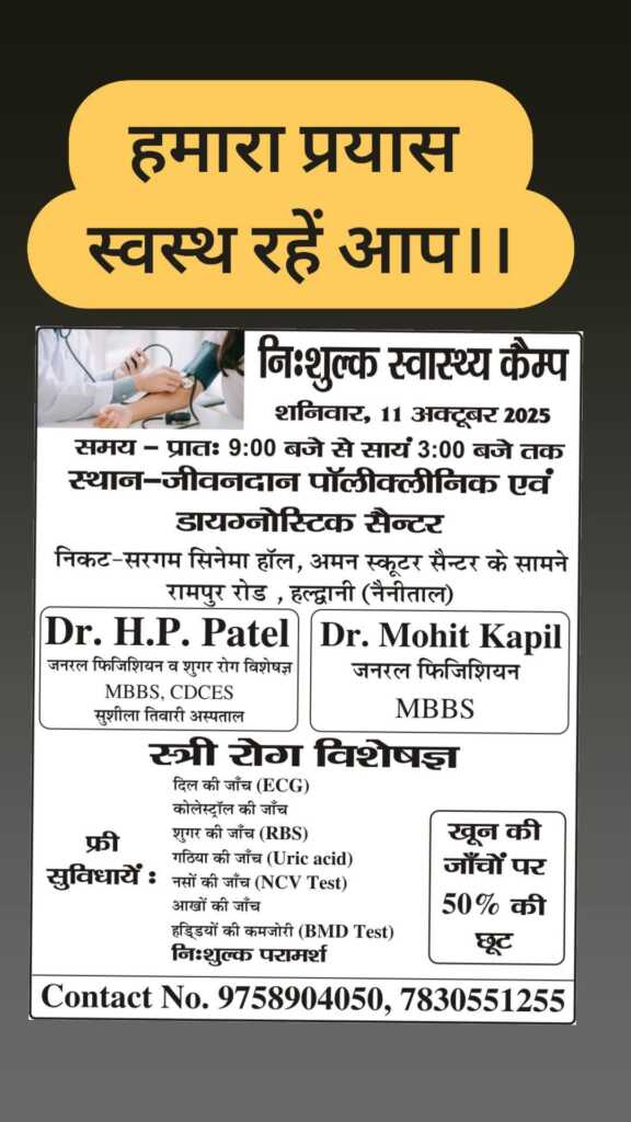 हल्द्वानी में 11 अक्टूबर को लगेगा निशुल्क स्वास्थ्य कैंप मिलेंगी तमाम सुविधाएं