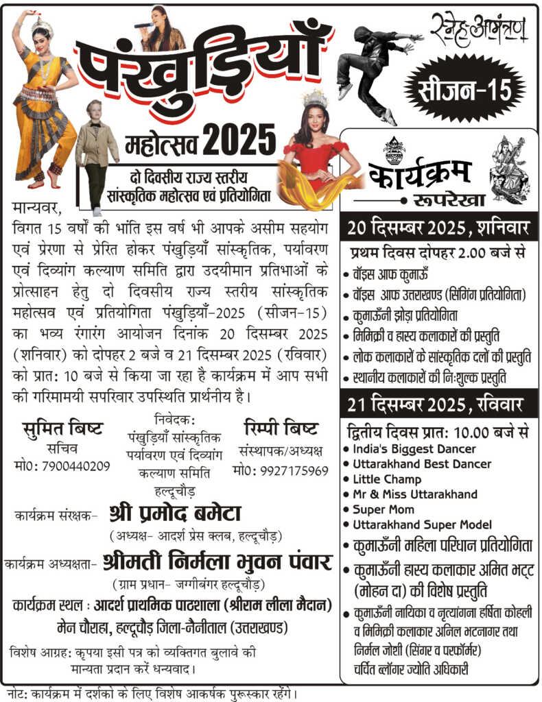 जनपद नैनीताल के विकासखंड हल्द्वानी अंतर्गत बेरी पड़ाव के अष्टादशभुजा महालक्ष्मी मंदिर का वार्षिकोत्सव धूमधाम से मनाया जा रहा है 28 अप्रैल से 30 अप्रैल तक चलने वाले वार्षिक उत्सव में कल पूर्णाहुति के बाद दोपहर 12:00 बजे से विशाल भंडारे का आयोजन किया जाएगा यह जानकारी देते हुए महालक्ष्मी मंदिर के पीठाधीश्वर महामंडलेश्वर सोमेश्वर यति जी महाराज ने बताया कि