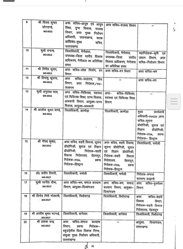 जिलाधिकारी नैनीताल समेत अनेक अधिकारियों के तबादले